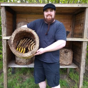 Growing up on the Baltic coast of northern Germany, his childhood was shaped by freedom, adventures in nature, and close contact with the animal and plant world. He developed his passion for nature at an early age. He has been involved with bees since 2010, initially as an apprentice in a large commercial beekeeping business. Confined by the conventions of modern agriculture, however, he took a different path and, in 2012 set up his own natural beekeeping business, which he has been running holistically ever since. He studied nature and environmental education. Since 2014 he has been offering herbal walks and other nature-based educational activities. From 2015 to 2017 he took on the management of a nature day-care center for kids. He is particularly interested in the ethnozoological research of bees. In this subject, he explores traditional beekeeping rites and practices, bees in mythology and folklore, and psychotropic honey. Another passion of his is incense burning, especially with local and unusual incense. In the field of species conservation, he also works as an expert consultant for hornet conservation and relocates hornet, wasp, and bumblebee nests as well as wild honeybees.
